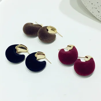 HL Vintage and Versatile Silver Needle Velvet C-Shaped Temperament Earrings for Women Daily Wear