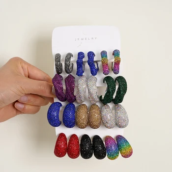 Women's Trendy Square Rhinestone Inlaid Colorful Geometric CCB Plastic Dot Drill Hoop Earrings