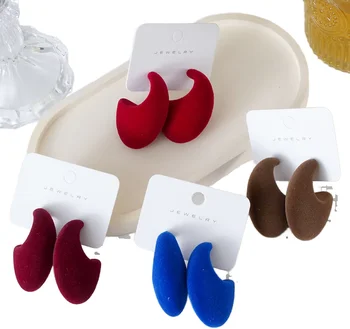 HL 2025 Winter Red and Blue Velvet Earrings for Women Retro Trendy Style Geometric-shaped Plastic Jewelry for Gift